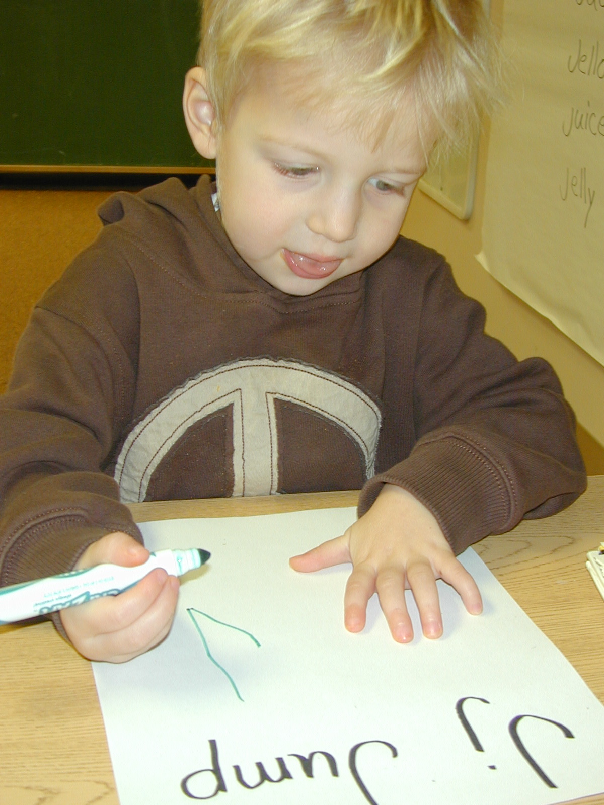 Finally, the letters "Jj" for Jump and "Rr" for Rhyme were practiced in the handwriting center.